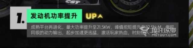 MY22版本的最大功率在9750转的时候增大了1kw;最大扭矩提前到7250转爆发,并且比原来增大0.5nm,即扭矩峰值在7250转时达到22.5nm。