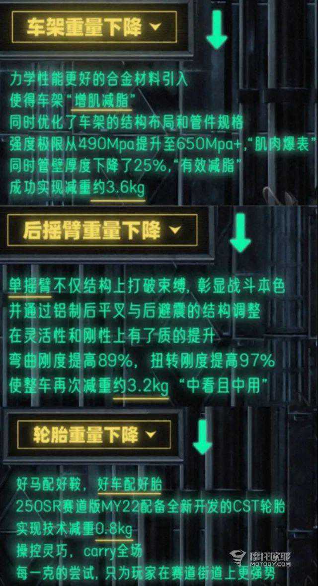 近期春风官微连续为代号为MY22的250SR赛道版升级车型预热造势,之前摩友们猜测卖关子的那“一降”会是价格或座高,直到3月6日春风自揭答案,和欧耶菌推测的一致——不是价格,而是车重。