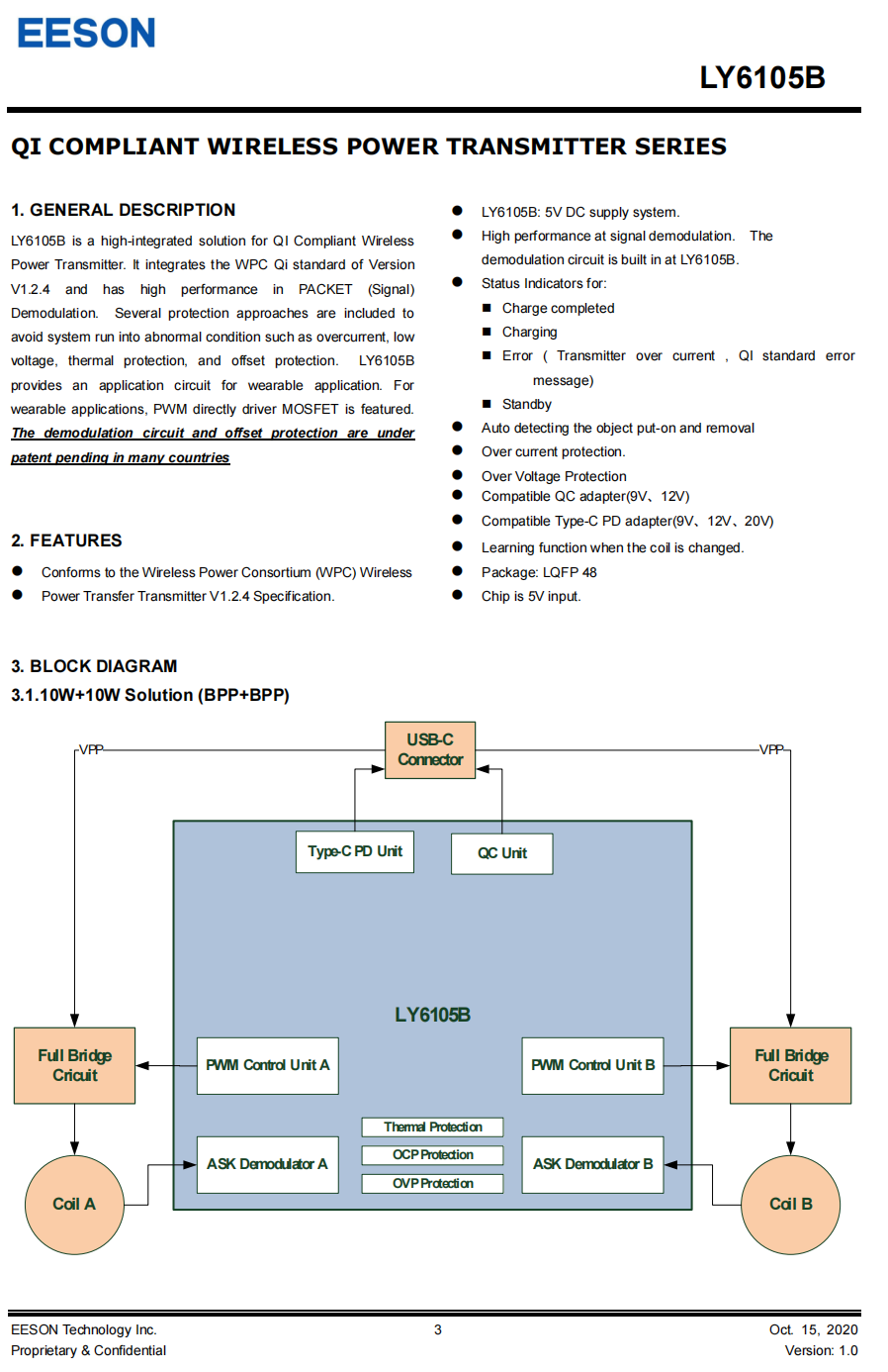 CV90365支持、最新标准,支持单线圈/多线圈无线充电应用,支持Qi标准BPP5W、苹果7.5W、三星10W、EPP15W充电;支持客户私有协议,功率高达100W。