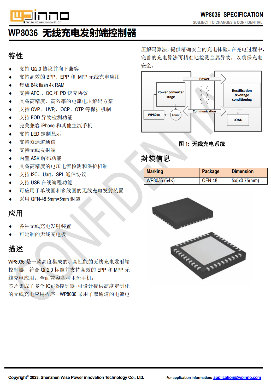 WP8036具备高精度的电压和电流检测,支持I2C,UART和SPI通信,具备USB在线编程功能,支持单线圈和多线圈应用。