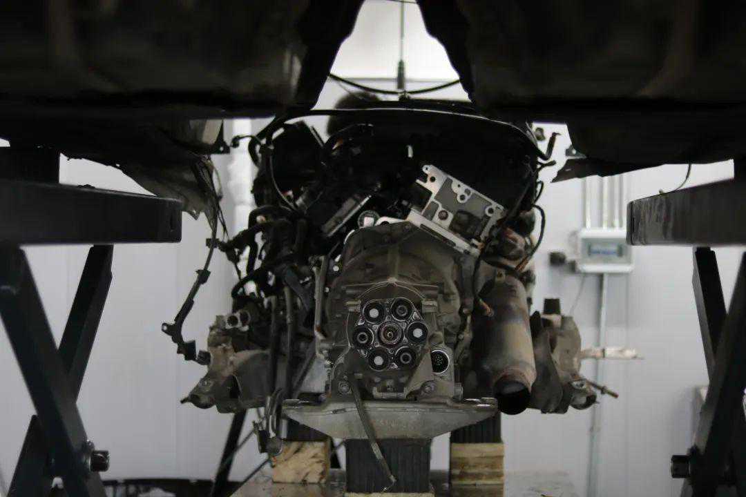 发动机、变速箱、连着元宝梁一起下来了。