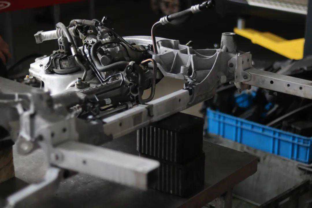 前悬挂避震、摆臂、拉杆、球头等组装完毕。