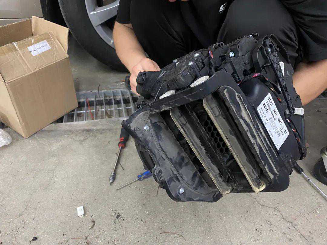 顺带解决一下副驾驶开空调异响严重的问题,先拆除蒸发箱鼓风机总成初步判断一下异响位置。