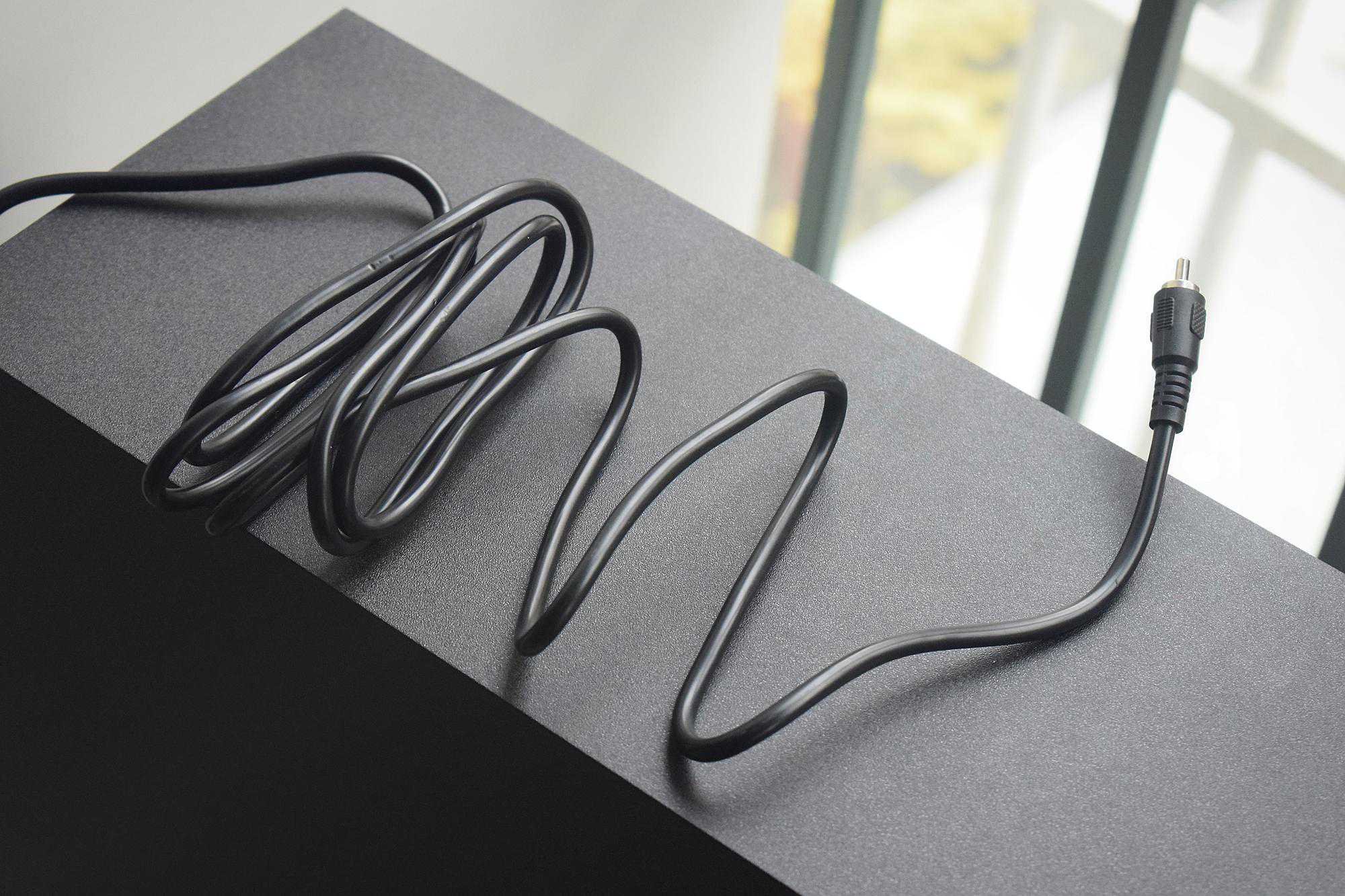 低音炮的线缆为一体非拆卸,目测长约近两米,足以满足复杂环境下的布局使用。