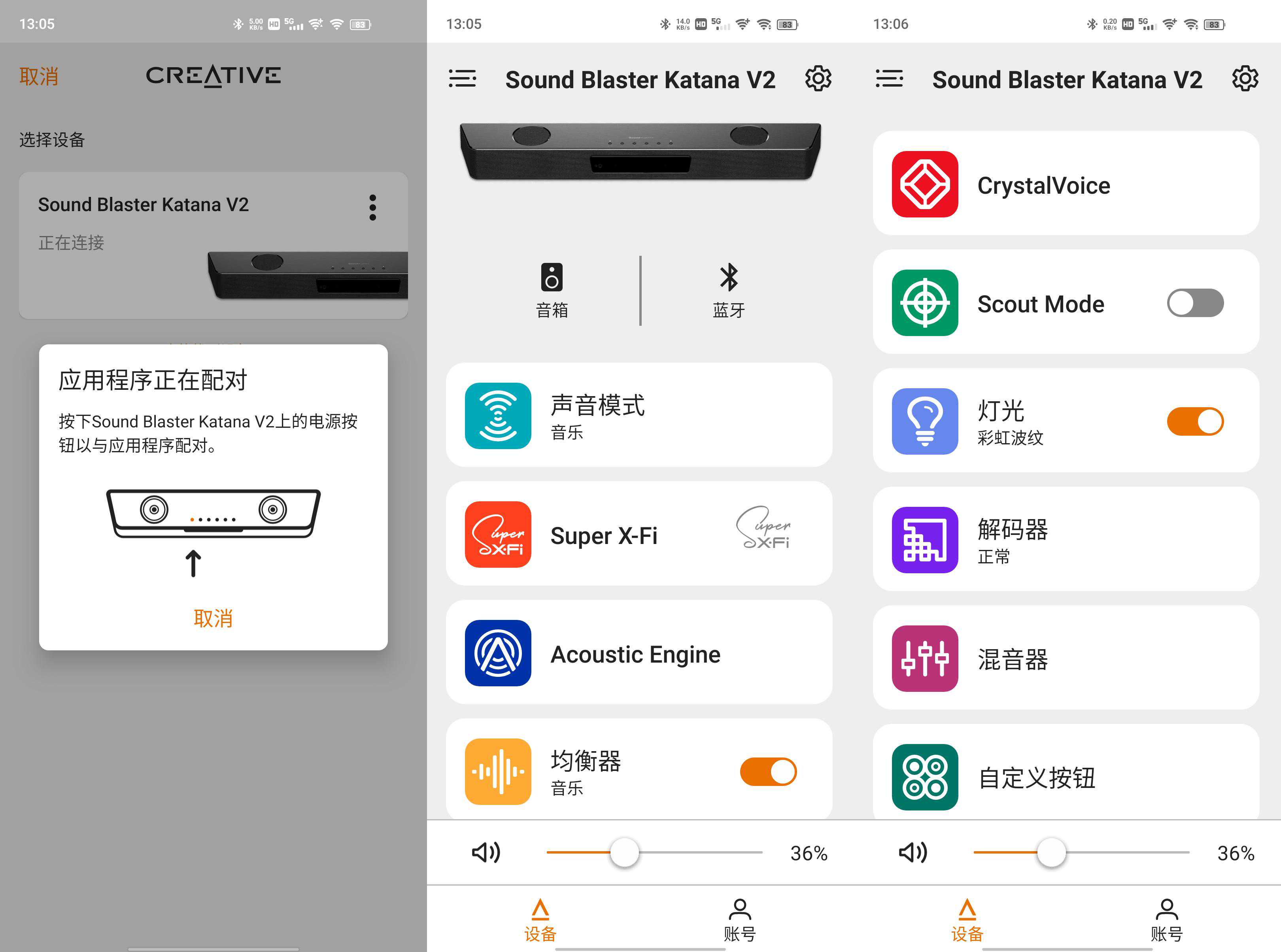 创新家的产品都可以安装相应的驱动来拓展、丰富更多功能,之前是通过SoundBlasterConnect来实现的,有PC(WIN/MAC)和移动端(IOS/安卓)不同平台可供下载。不过目前创新已然将其整合为全新的“Creative”APP。大家可以在官网下载(有点不太友好的是,安卓版仅提供了谷歌商店,限于国内状况,希望后继能提供直接下载)。