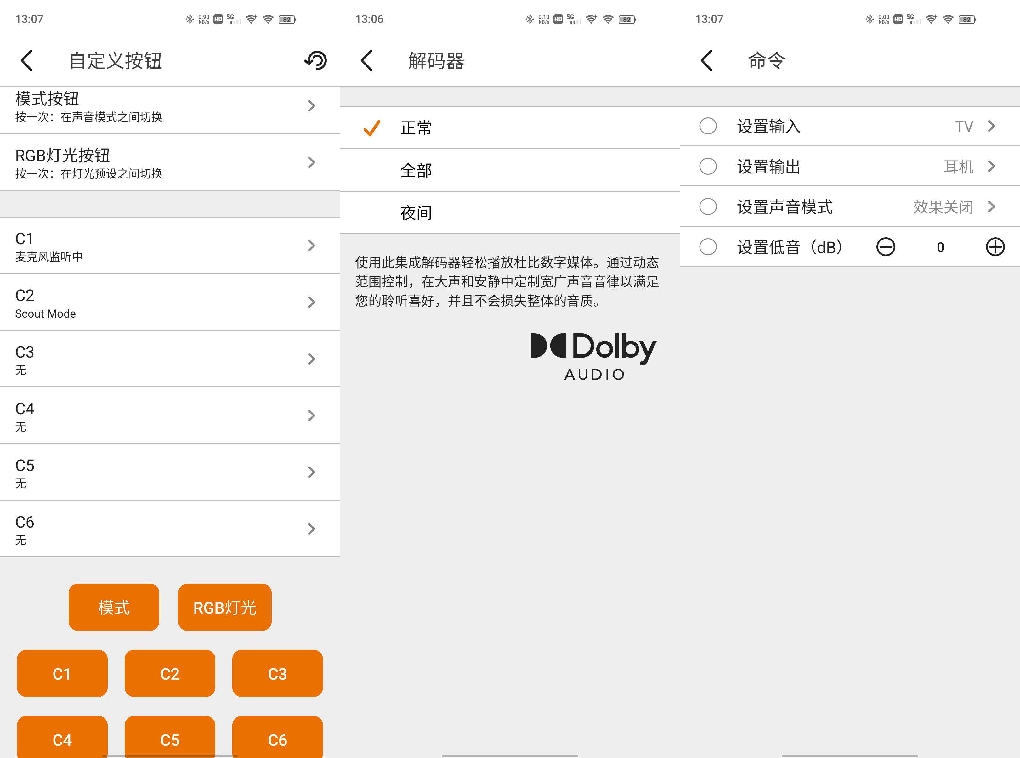以安卓应用端为例,我们可以调节KatanaV2的EQ设置,对SuperX-Fi(声晰飞)、ScoutMode(侦察模式)、AcousticEngine(音效配置)、LED灯效编程、人声增强、杜比音频解码等进行开关控制。这对于专业玩家来说十分有趣。而对于小白用户,音箱本身就内置了很多种预设选项,我们只管按下遥控器就能实现不同场景下的音效切换,大家各取所需。