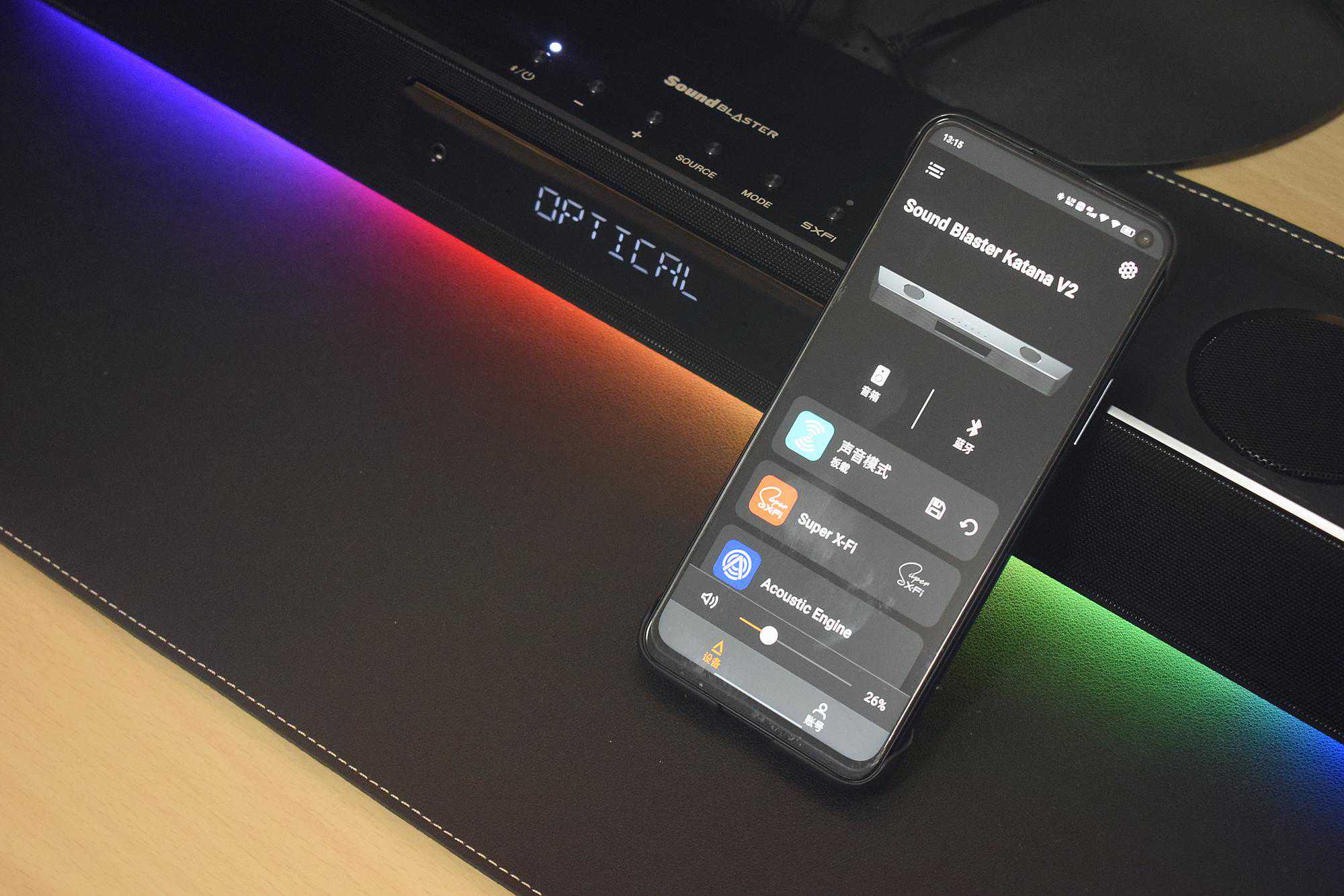前面谈接口时说过,KatanaV2提供了HDMIARC、光纤、AUX、无线蓝牙、SXFI输出等丰富端口。并兼容经过SuperX-Fi认证的各种设备,这也意味着我们可以不仅将之与PC/Mac台机,电视、游戏主机相连,也能与手机/平板、播放器连接。其适应性是非常广泛的。