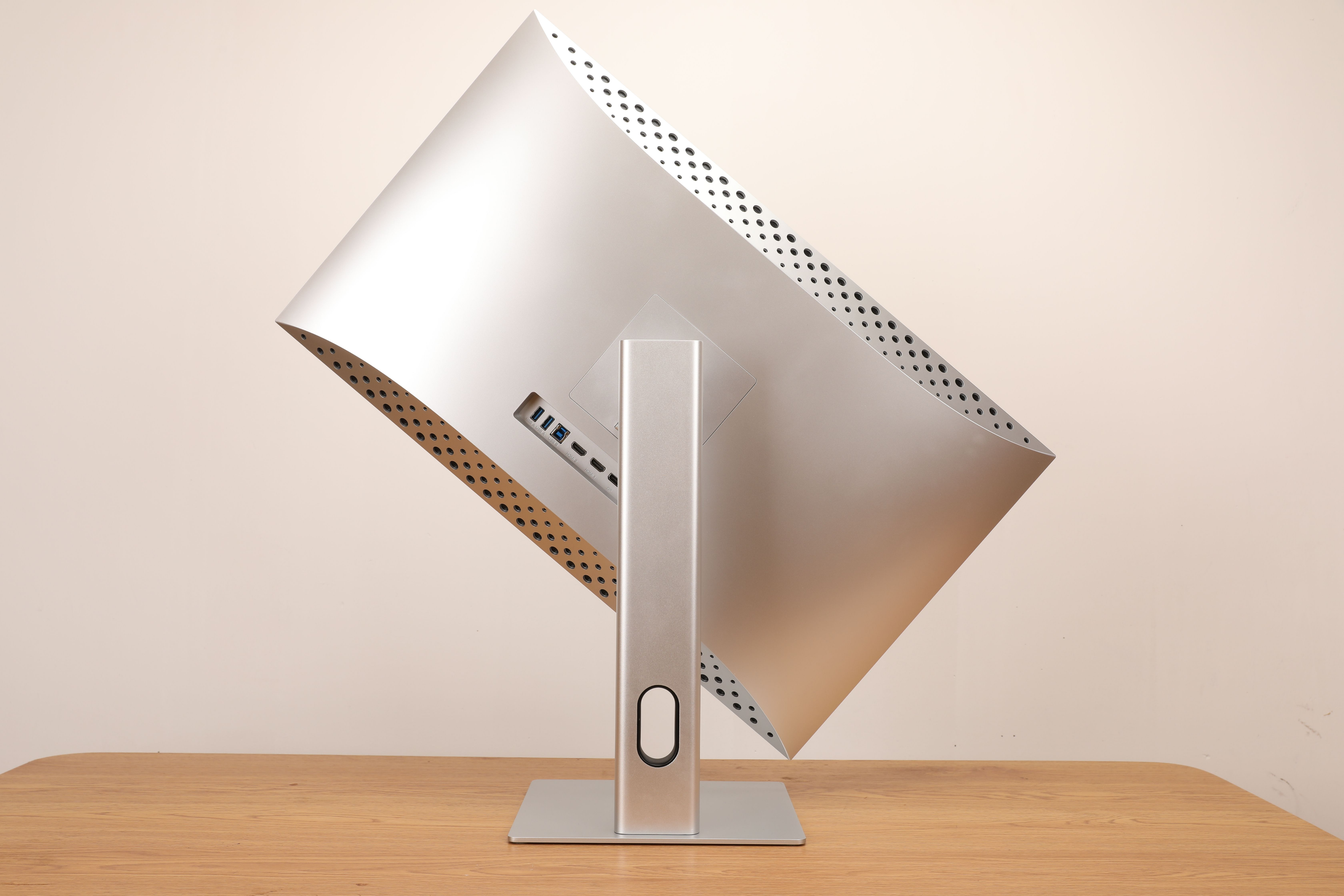 所有的接口都位于显示器背面,从左到右分别有2个接口,1个USB-B接口,1个Type-C接口,2个HDMI接口,1个DP接口,1个音频接口和电源线接口。