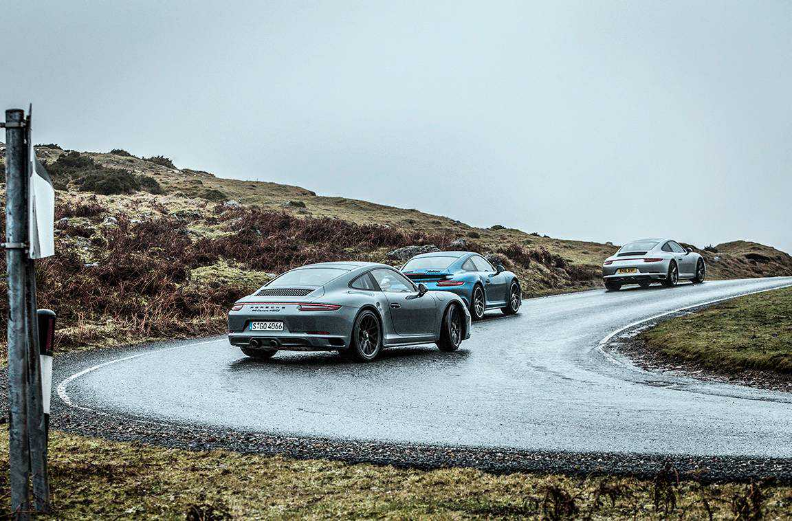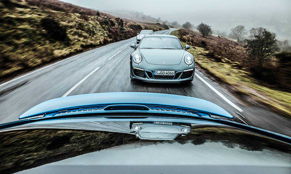 有两种办法来搞清楚:算一算参数,在一条英国最棒的公路上开一台装备PDK变速器的Carrera4GTS,顺便拉两台同类陪练:一台手动挡Carrera4S和一台TurboS。首先从配置上,除去绣花的头枕,贴纸和20英寸缎面黑色中央锁止的TurboS轮圈不算,你基本上能用一台CarreraS加装出一台GTS,当然名字改不了。只要加装PASM运动悬挂(比标准版降低了20毫米),一套运动Chrono组件,运动排气,运动设计前保险杠,运动座椅再加一台多了30匹马力/50N·m的450匹/马力550N·水平对置六缸涡轮增压发动机(CarreraS动力套件),瞧啊,一台没有铭牌的GTS出现了。