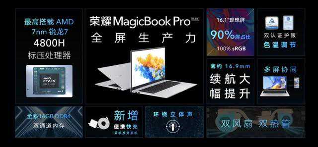 2020年7月16日,荣耀正式推出全新MagicBook14/15系列锐龙版及荣耀MagicBookPro锐龙版,全面升级新一代7nm制程的AMD锐龙4000系列移动处理器,带来A+级生产力。在这里,重点向广大用户推荐最新发布的荣耀MagicBookPro锐龙版,它具备的高性价比抢占2020轻薄本行业下半场。