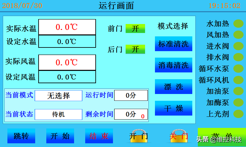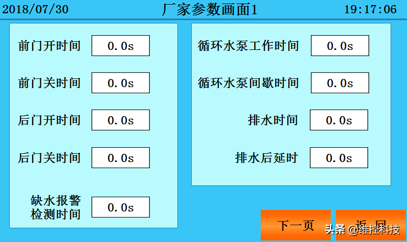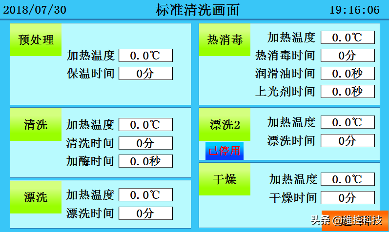 3、参数画面:此画面主要是设备清洗过程中,每个阶段的加热温度和运行时间。