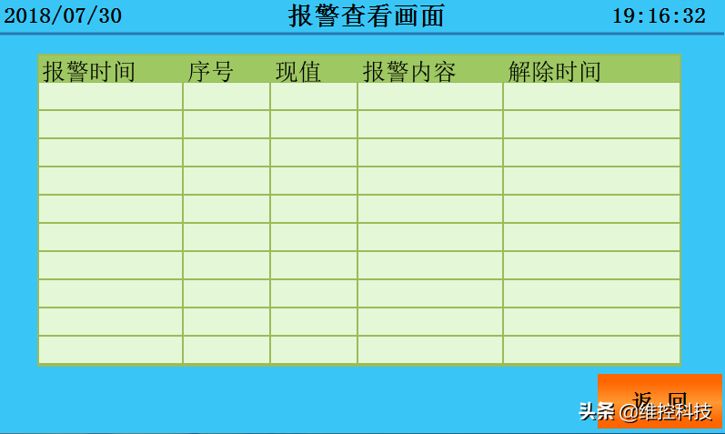 4、报警记录画面:此画面主要是记录设备的报警信息。