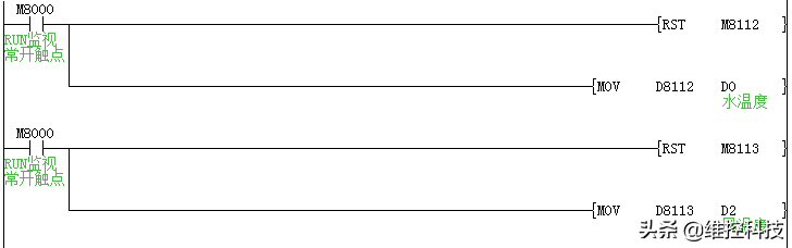 2、选用LX3V-1616MT-A,LX3V-2PT-BD,实现各个动作控制,读取水温、风温,控制加热量等。