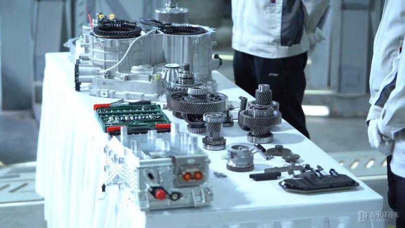 这台P4电机有两个设计亮点,一个是采用了两挡平行轴结构设计,整车轮端扭矩提升30%,同时可扩大电桥高效区域面积,提升整车经济性2%以上。