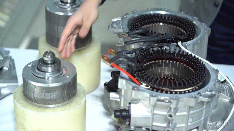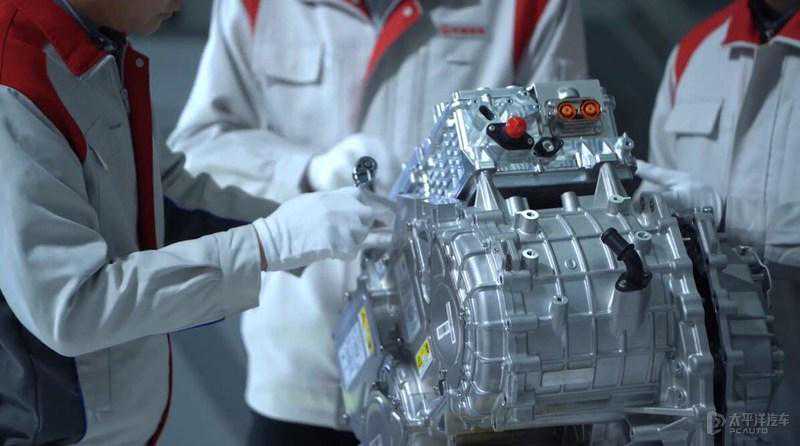 上方的铸铝箱体是双电机控制器。体积小,集成化程度高,NVH更佳。