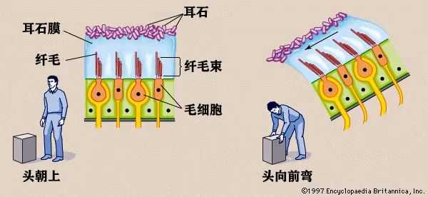 耳石器发挥作用示意图,它还可以检测你头部的一些晃动等等|图源见水印