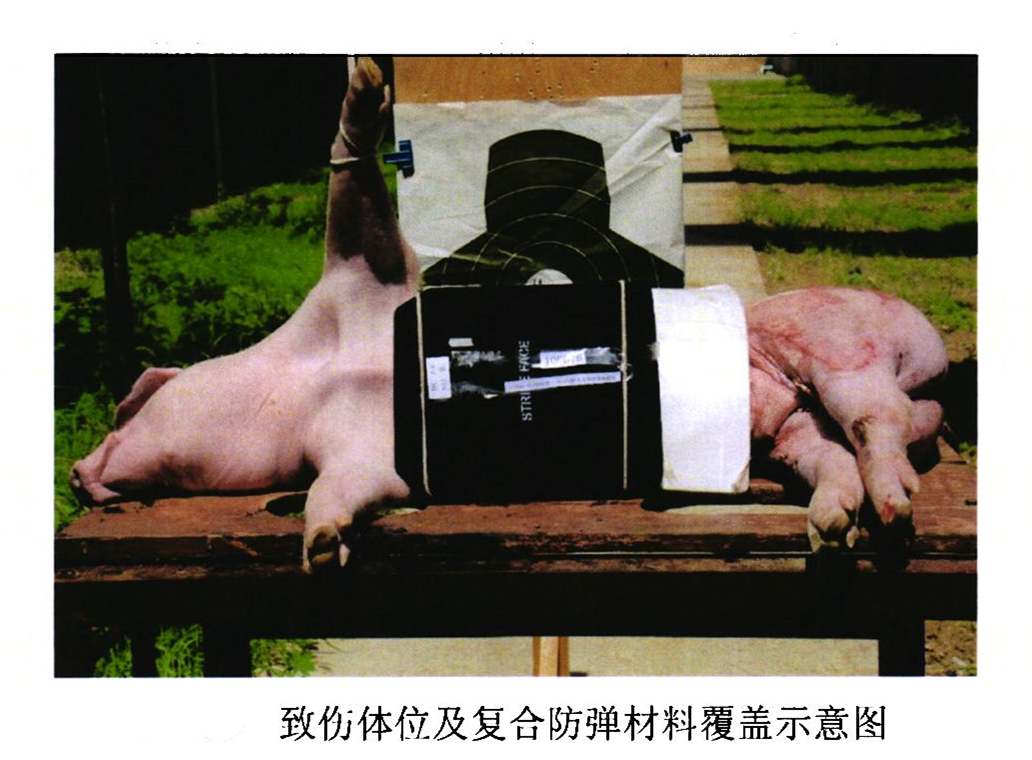 由上可见,该复合防弹衣对DBP95式5.8mm普通弹的能量吸收率为88.89%。猪体测试使用DBP95式5.8mm普通弹,射击距离25m,射击后有什么结果呢?