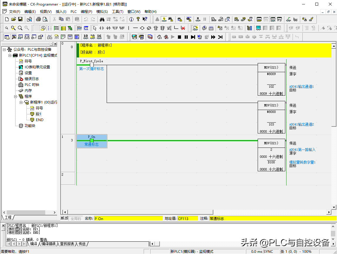 CP1W-MAD11如要使用第一个输入通道0,电压输入方式0~10V;第二个输入通道1,电流输入方式4~20mA;输出通道为电压输出方式0~10V,则给n+1通道字赋值为8000比较,如一致则输出信号用作断线检测报警。