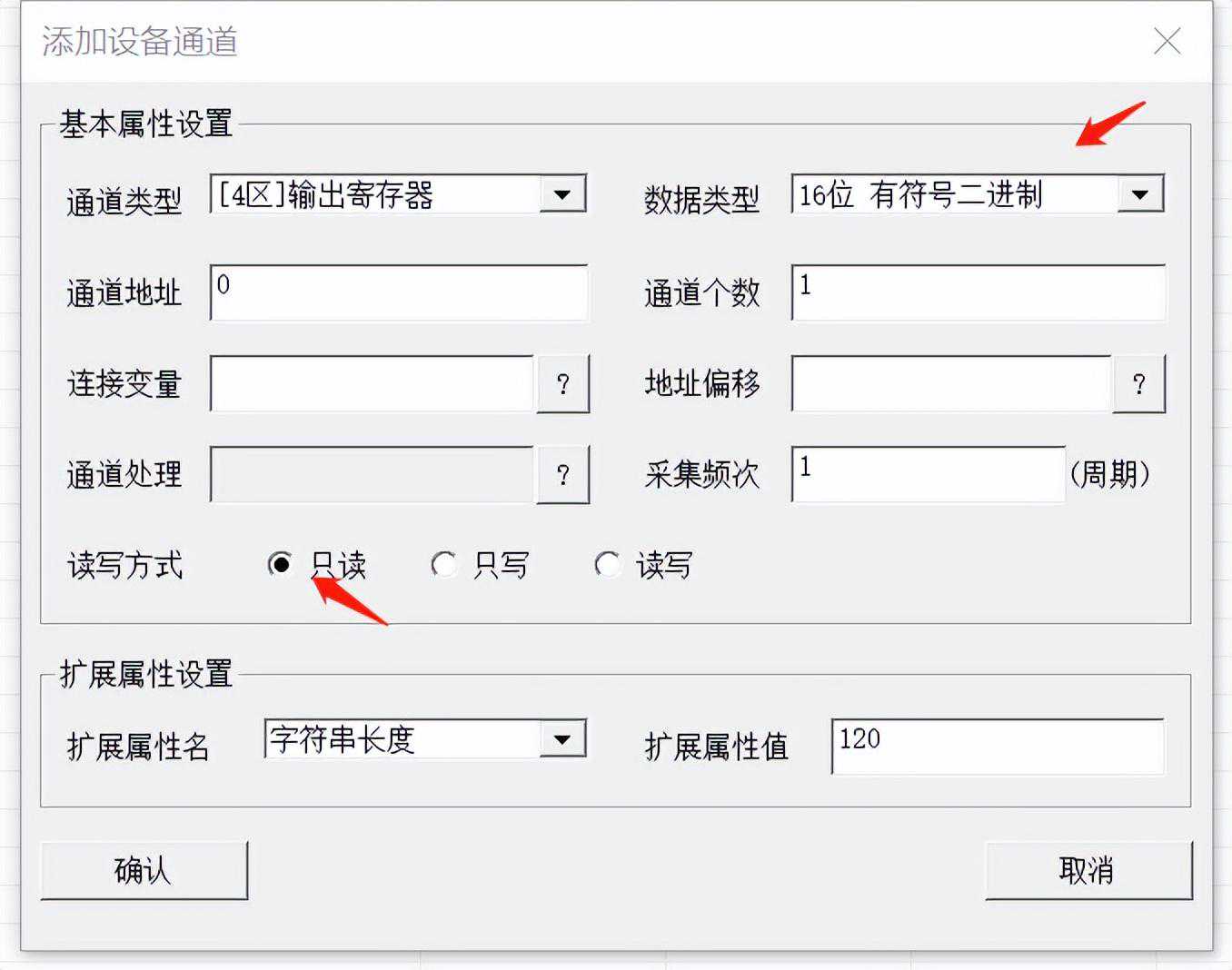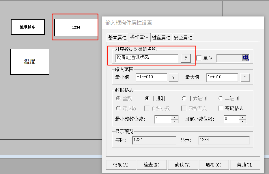 打开设备0--[ModbusRTU],增加设备通道并连接变量。一、为通讯状态连接一个变量,用于判断测温仪与屏幕通讯是否正常。二、增加一个设备通道,地址是4WB0001,注意读写方式为只读。