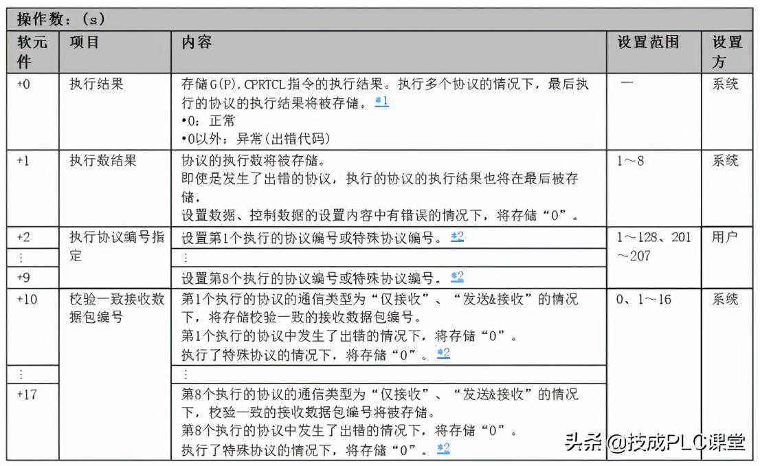 S:起始软元件(看下表)。注:执行协议编号指定中可以填写协议编号,n2执行的协议顺序以执行协议编号为准。