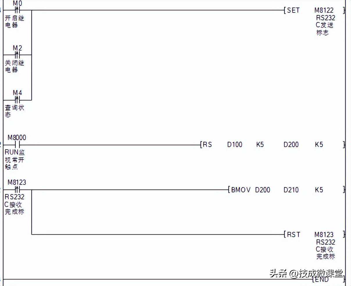 注意:移动接收数据后需将接收结束标志位(M8123)复位,M8123为ON时,不能获取下一个接收数据。