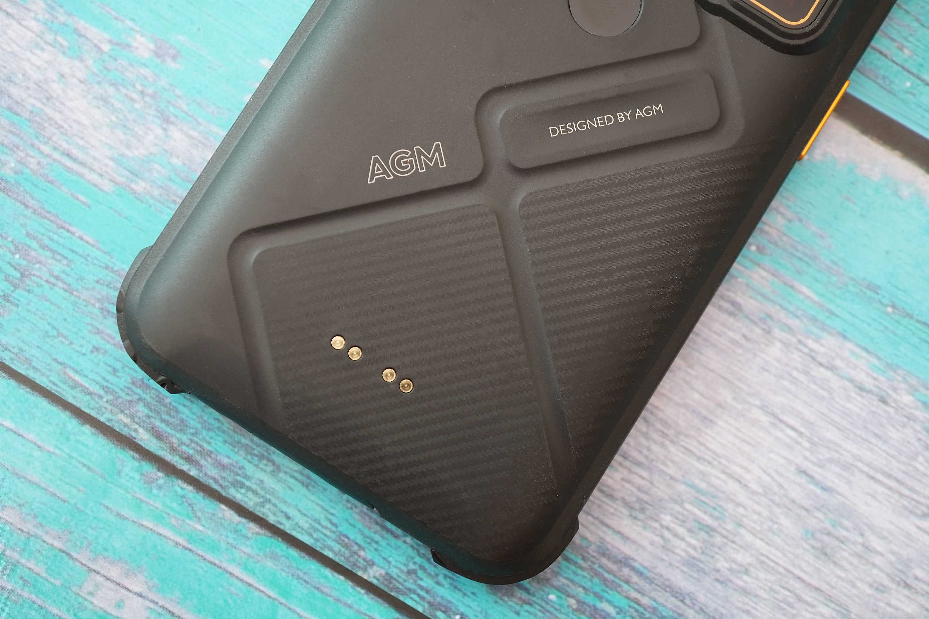 ▲除了用充电头搭配数据线充电的方式,AGMG1SPro还延续了之前支持座充的方式(座充需另购)。为了做好防水,AGMG1SPro的充电口日常用硅胶塞堵住,这就使得采用线充时,会带来一些麻烦。如果有个座充,充电会方便很多。座充金属触点之上,是NFC区域,作为一台三防手机,这也是一个很城市化的使用功能了。