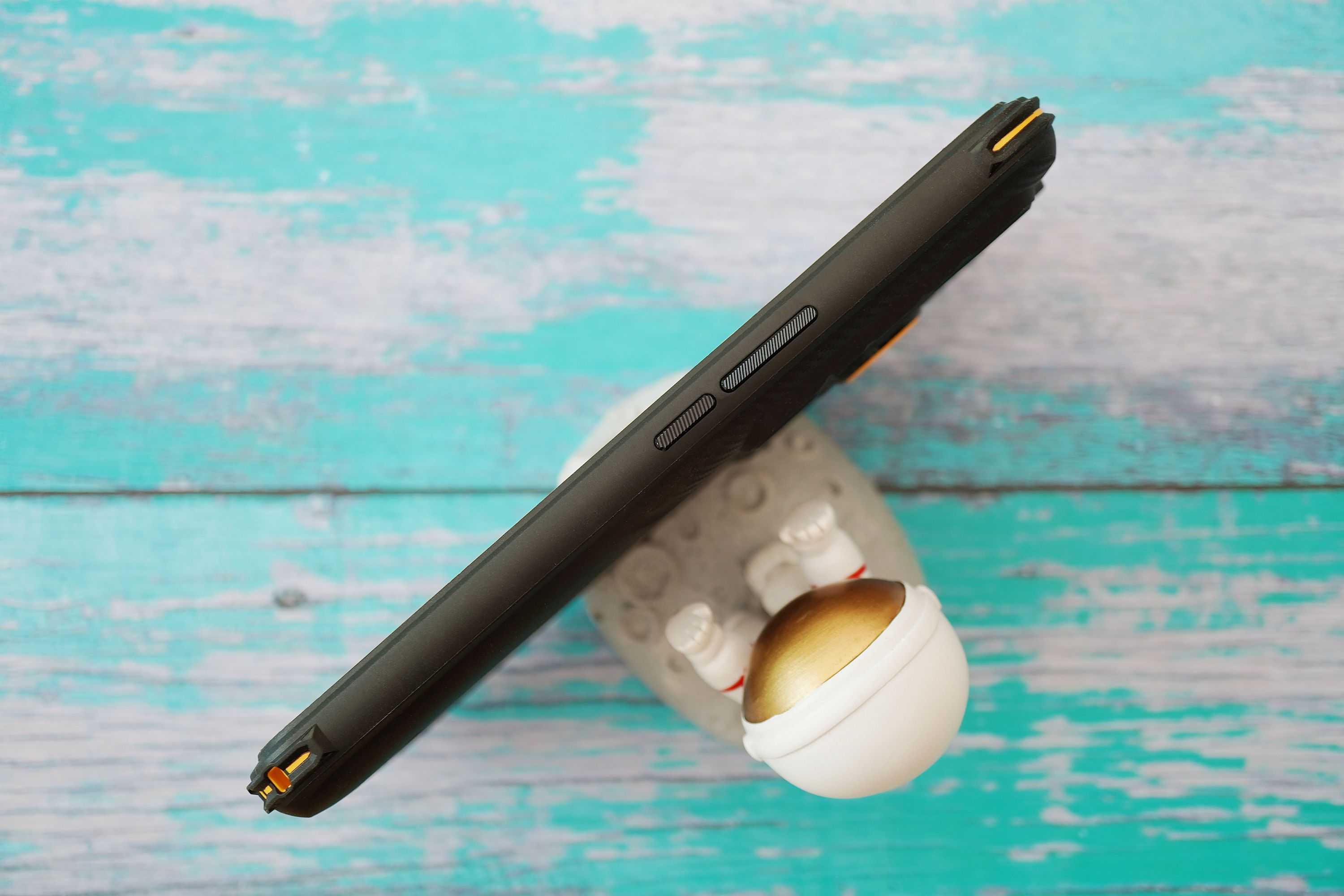▲AGMG1SPro的电源键和音量键表面都做了斜纹处理,这在户外使用场景下会比较实用。比如,手机上沾满了汗水,就不用担心湿滑了,触按手感会相当稳健。