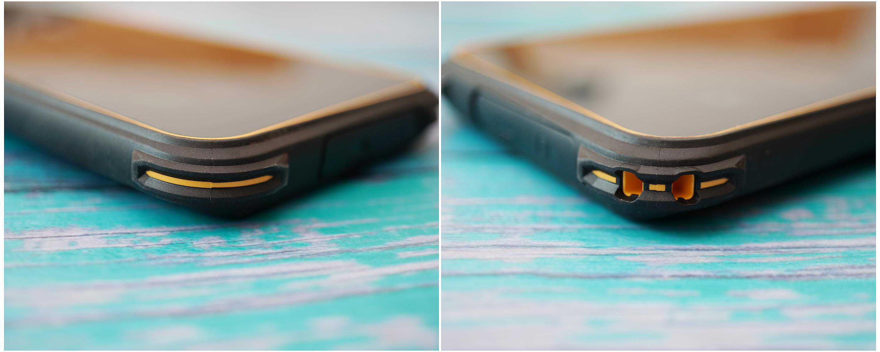 ▲手机不可避免的需要设置手机卡和充电插口,但AGMG1SPro主打三防,肯定要保证其基础防水性能,为此,它在两种插口区都设置了硅胶防水塞。