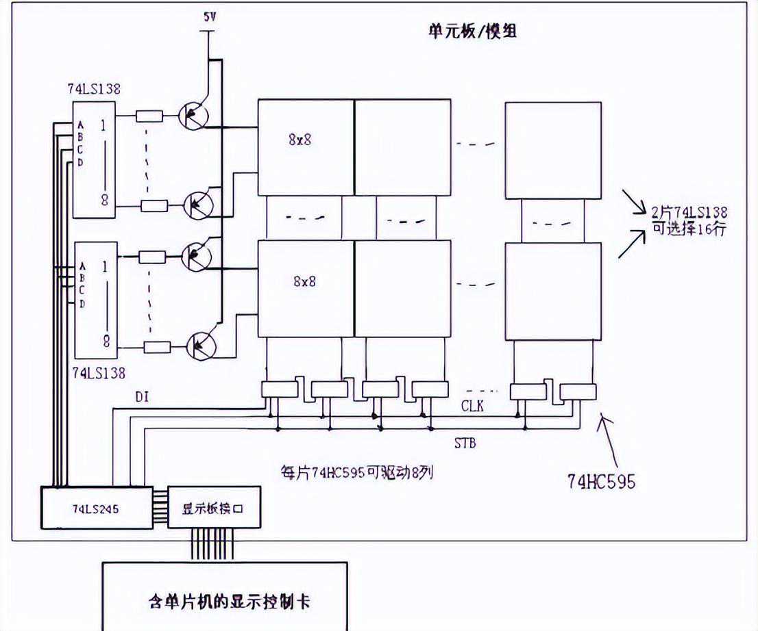 将许多这样的模块组合在一起,就是我们通常说的单元板/模组,而驱动其显示需要显示驱动电路和诸如单片机之类的智能控制芯片。通常我们的单元板/模组是带有显示驱动电路的,我们还需要带有单片机的控制卡才能将我们所需要显示的文字/图形显示在屏幕上。