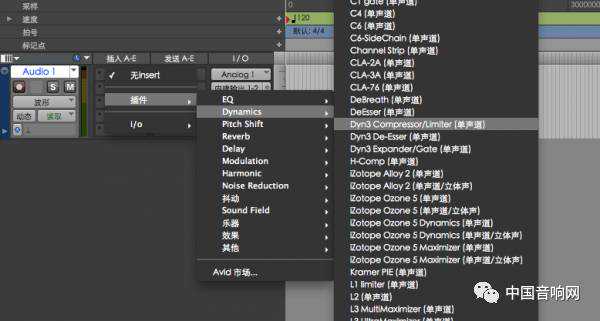 效果器插件分插入式和发送式两种用法。不知道的新手可以先这样记一下,常用的压缩、限制、激励、EQ、修音高等插件都是插入式用法,而混响和延迟效果一般都是发送式用法。好下面先看插入式的用法,如图5-1、5-2、5-3所示。