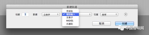 图6-4:在需要加混响的音轨上的“发送”机架中,选择“轨道”—Aux轨