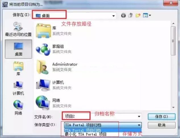 设置好存档路径和名称,选择项“TIAPortal项目归档”。