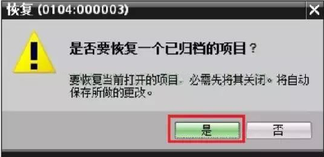 在博途软件中单击“项目”菜单,选择“恢复”。