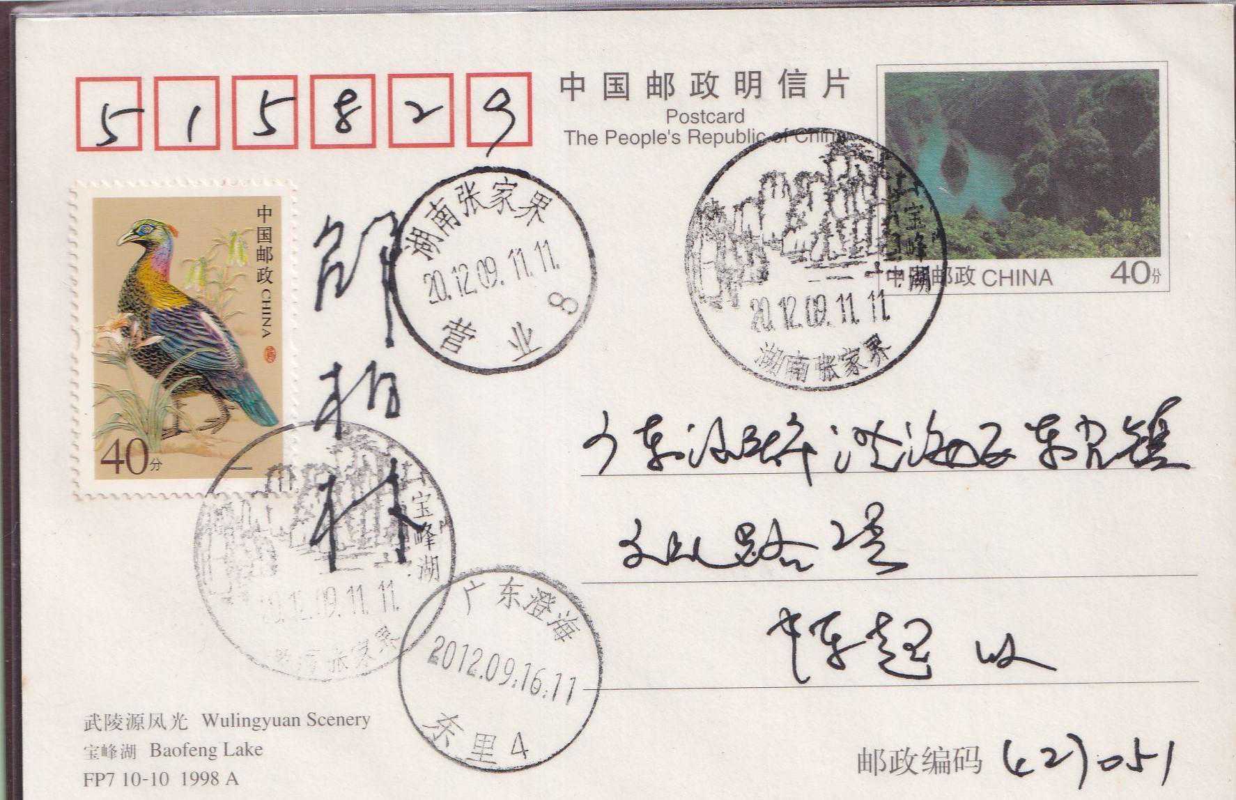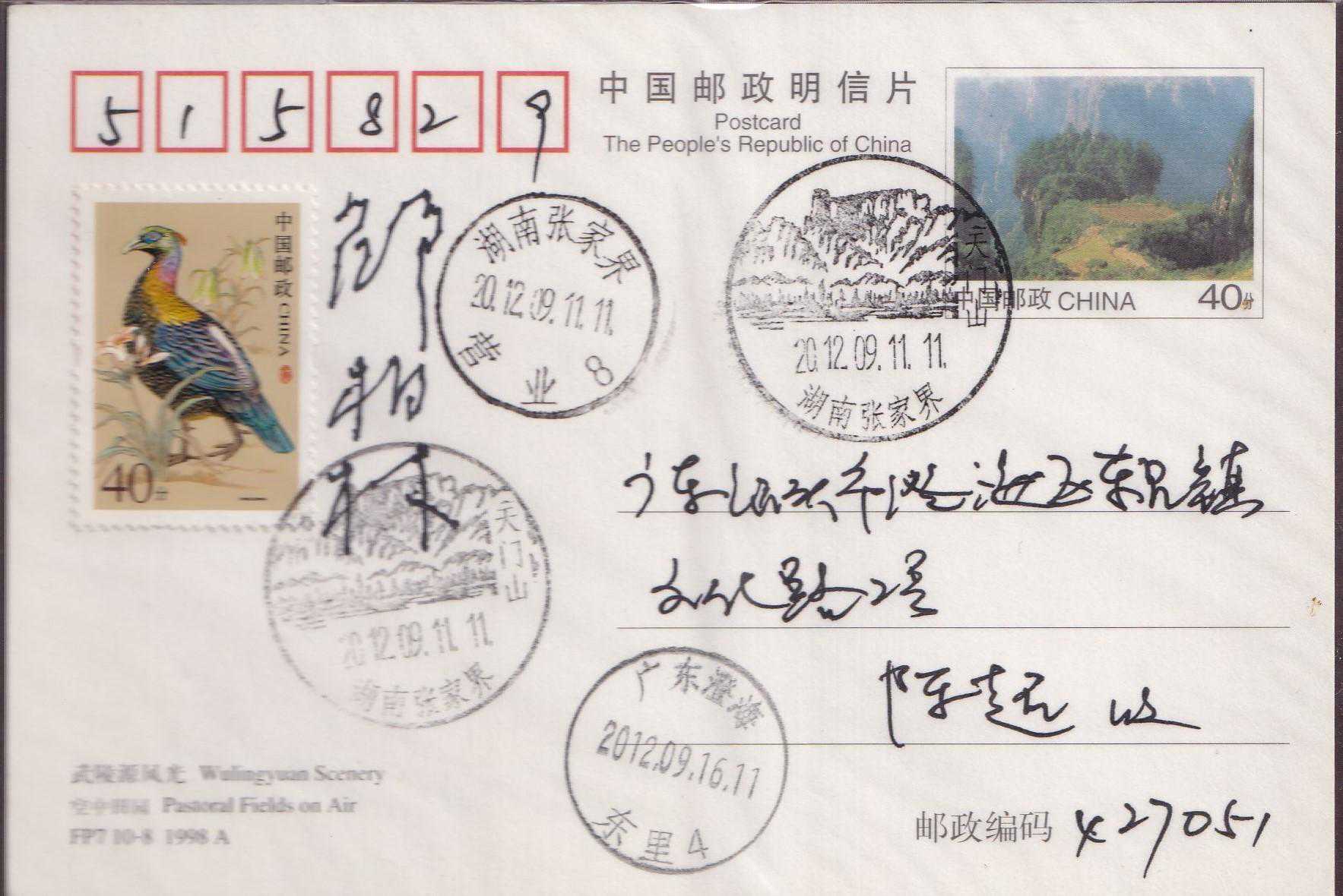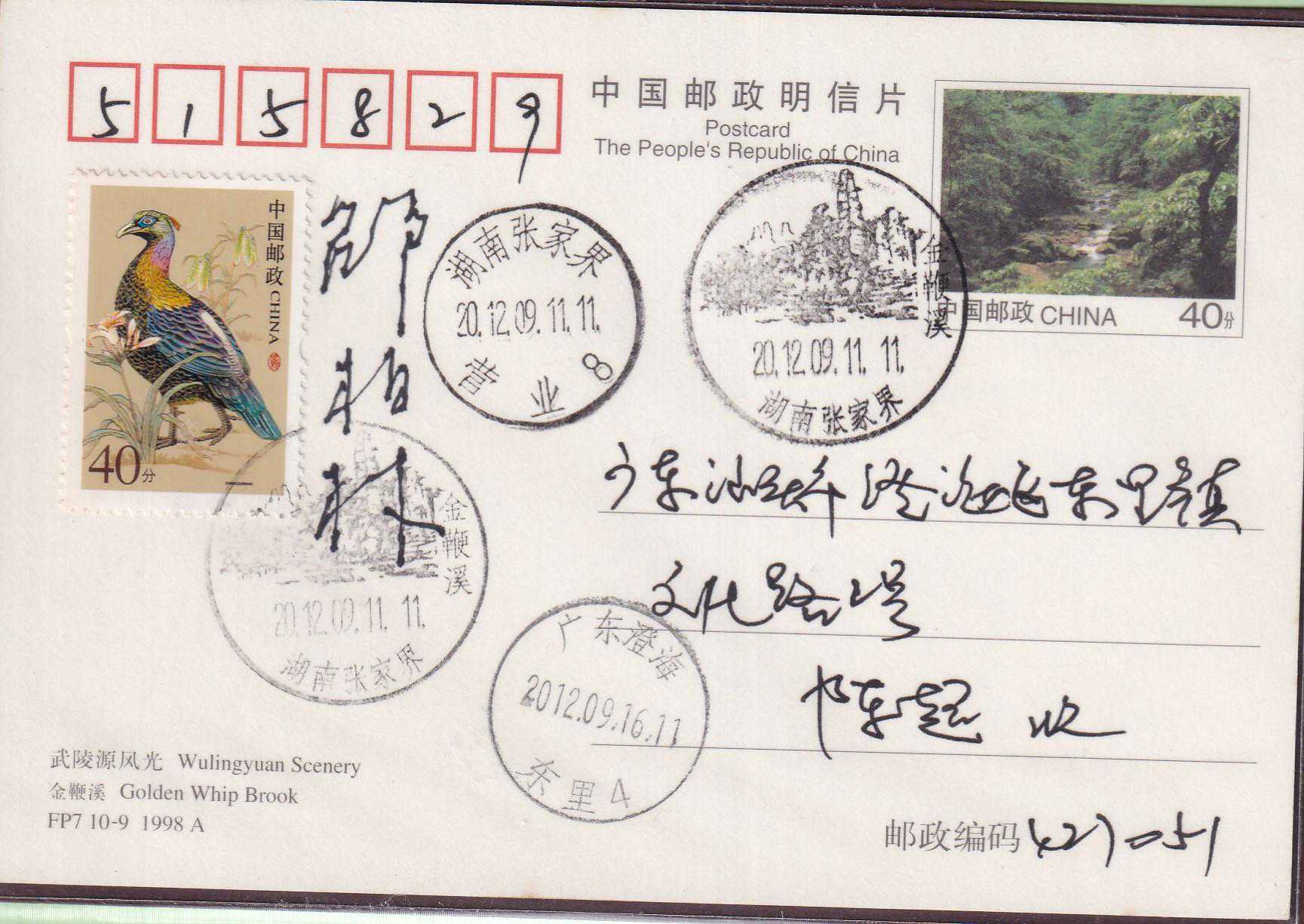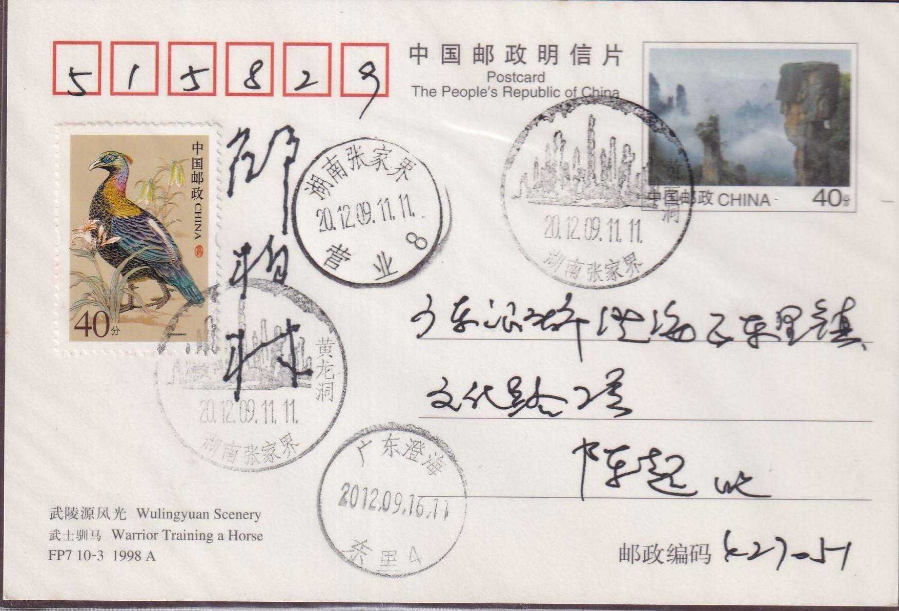武陵源位于中国湖南省西部张家界市境内,由张家界国家森林公园、索溪峪、天子山三大景区组成。境内山奇水秀,峰峦叠嶂,林茂谷幽,人迹罕至,充满原始的神秘野趣。武陵源素有峰三千、水八百奇异的自然王国美称。1982年张家界被列为中国第一个国家森林公园。1992年武陵源被联合国教科文组织列入《世界遗产名录》。1998年7月30日,FP7《武陵源风光》邮资明信片(A组/B组)发行,明信片设计者:邵柏林。采用彩色胶印,由深圳当纳利旭日印刷有限公司印制。