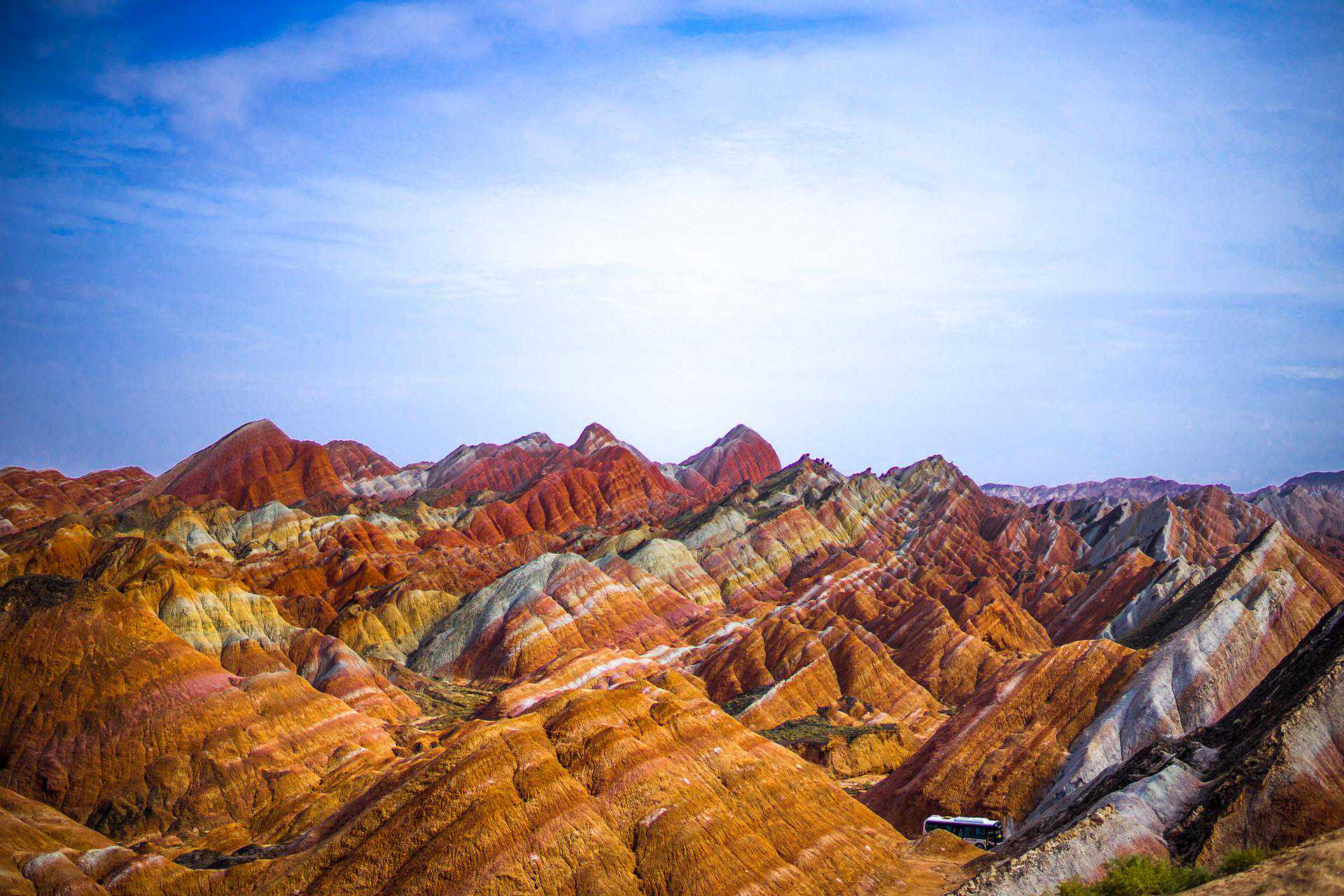张掖丹霞如今已成立张掖丹霞国家地质公园,实际上它由“七彩丹霞”和“冰沟丹霞”组成,一条条彩虹似的山峦横亘大地之上,令人震撼不已。