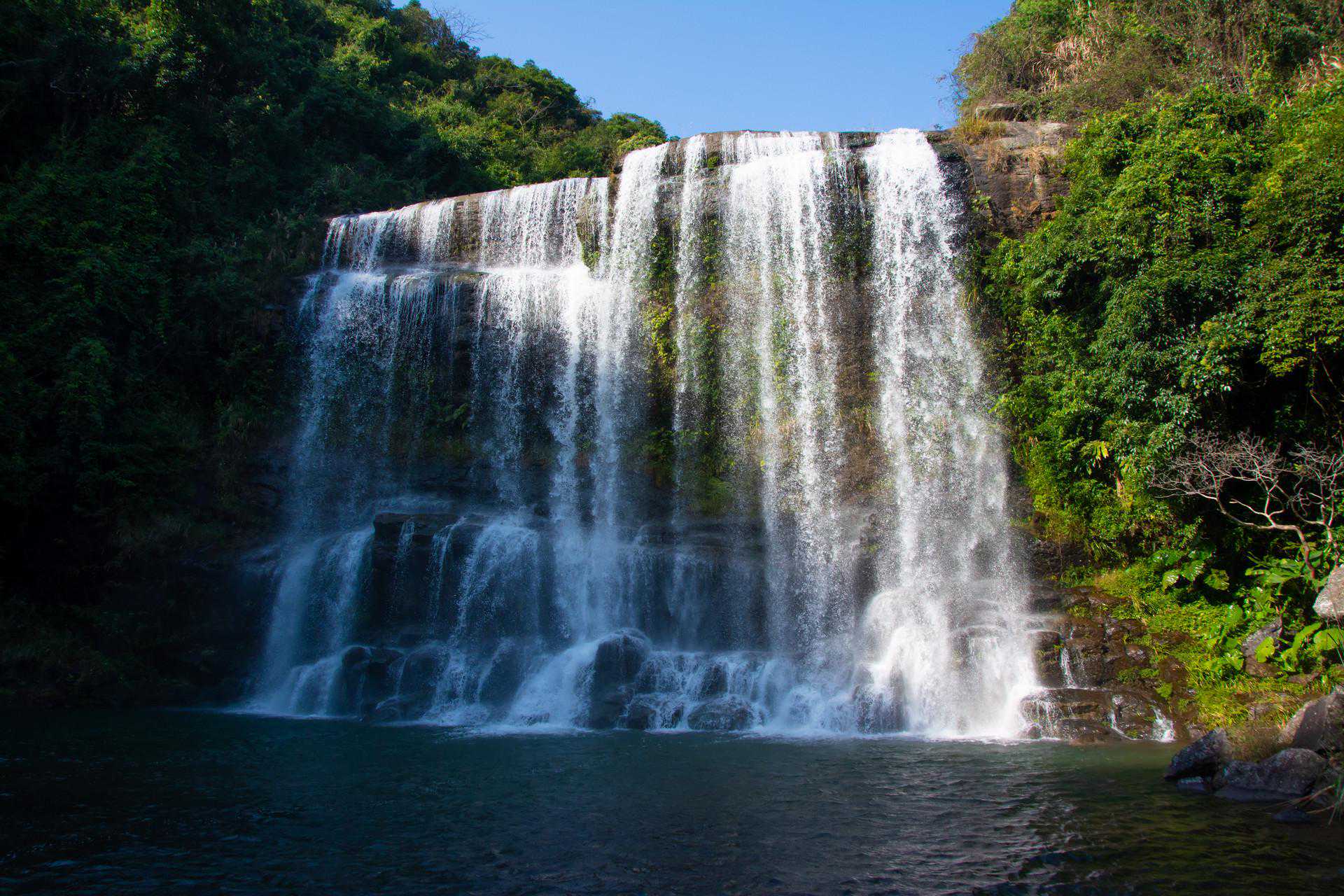 更重要的是,这里有别处见不到的震撼景象,在赤红的丹霞与苍翠的树林间,一条条银色瀑布腾控直下,气象万千!