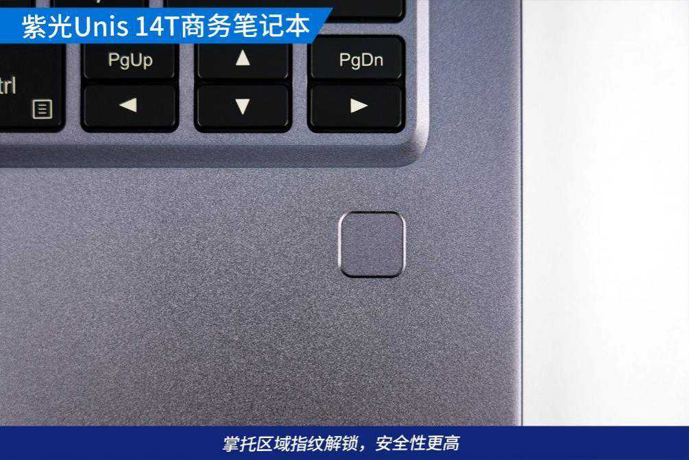 C面是最核心的操作区域,标配的背光键盘让Unis14T在白天、黑夜两种状态下都能无障碍办公。右侧掌托区域有独立指纹识别模块,接触面积大、识别率高,保证了用户的隐私安全。