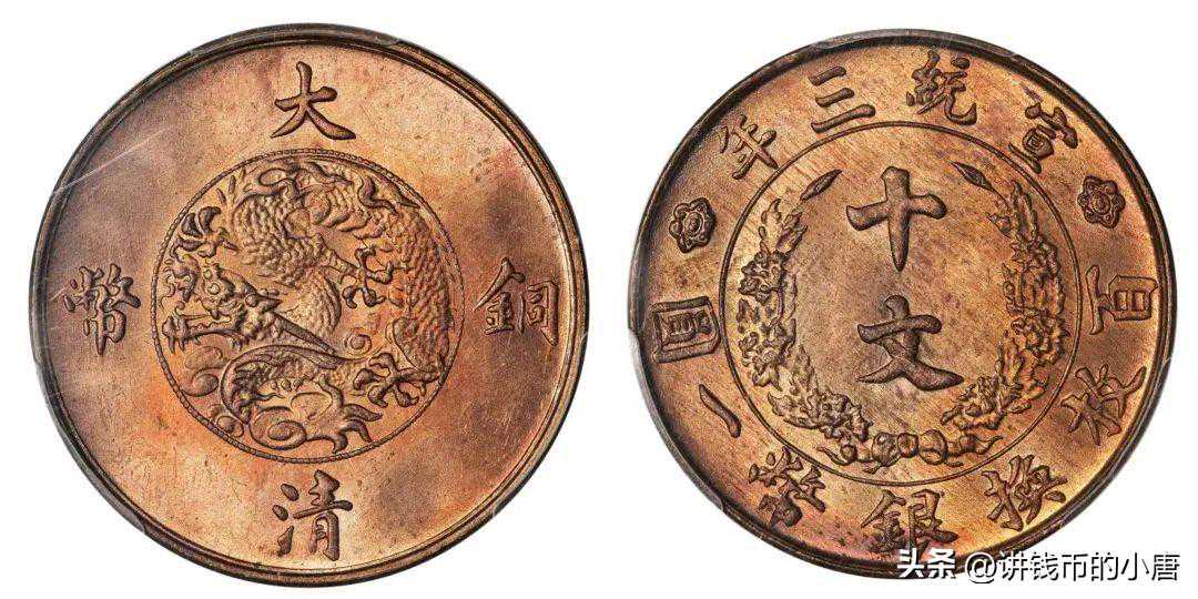 宣统三年(1911)大清铜币十文PCGSMS65RB