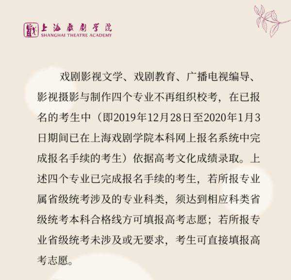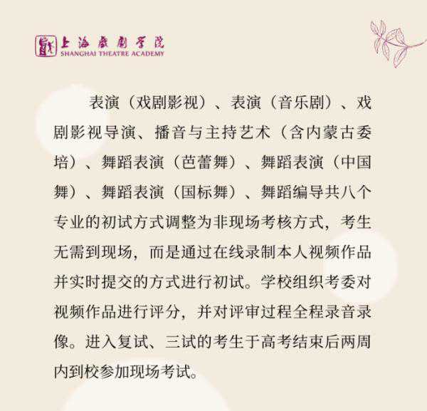 (节选自:上海戏剧学院2020年本科招生专业考试调整方案)