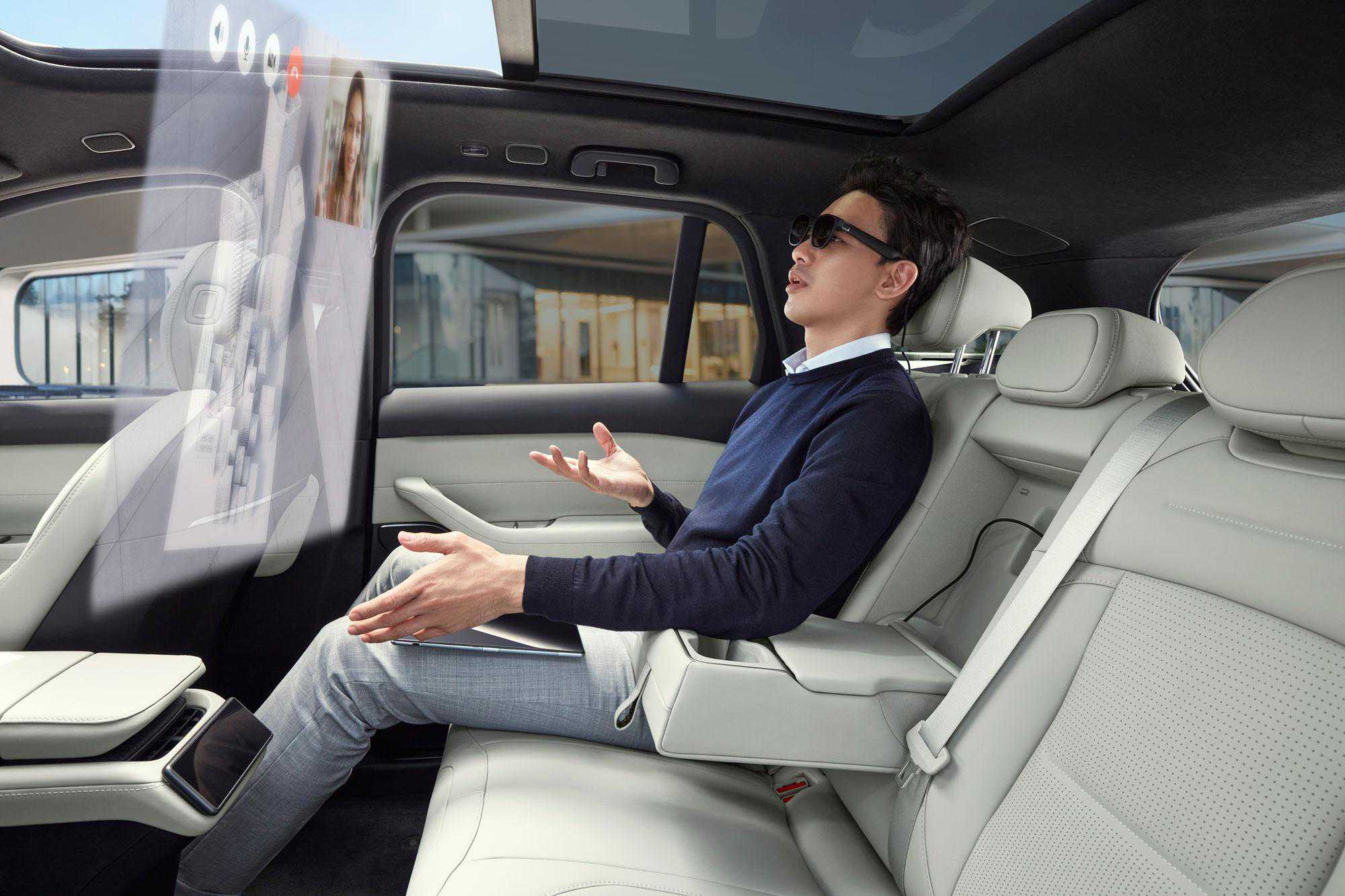 搭配NIOAirARGlasses可实现四人观影、游戏、比赛及会议场景,可体验等效6米外最大201英寸巨幕,支持多屏显示和远近可调,结合7.1.4沉浸音响系统,享受震撼视听效果,支持手机、电脑及便捷游戏机等设备接入,舱内体验更丰富。