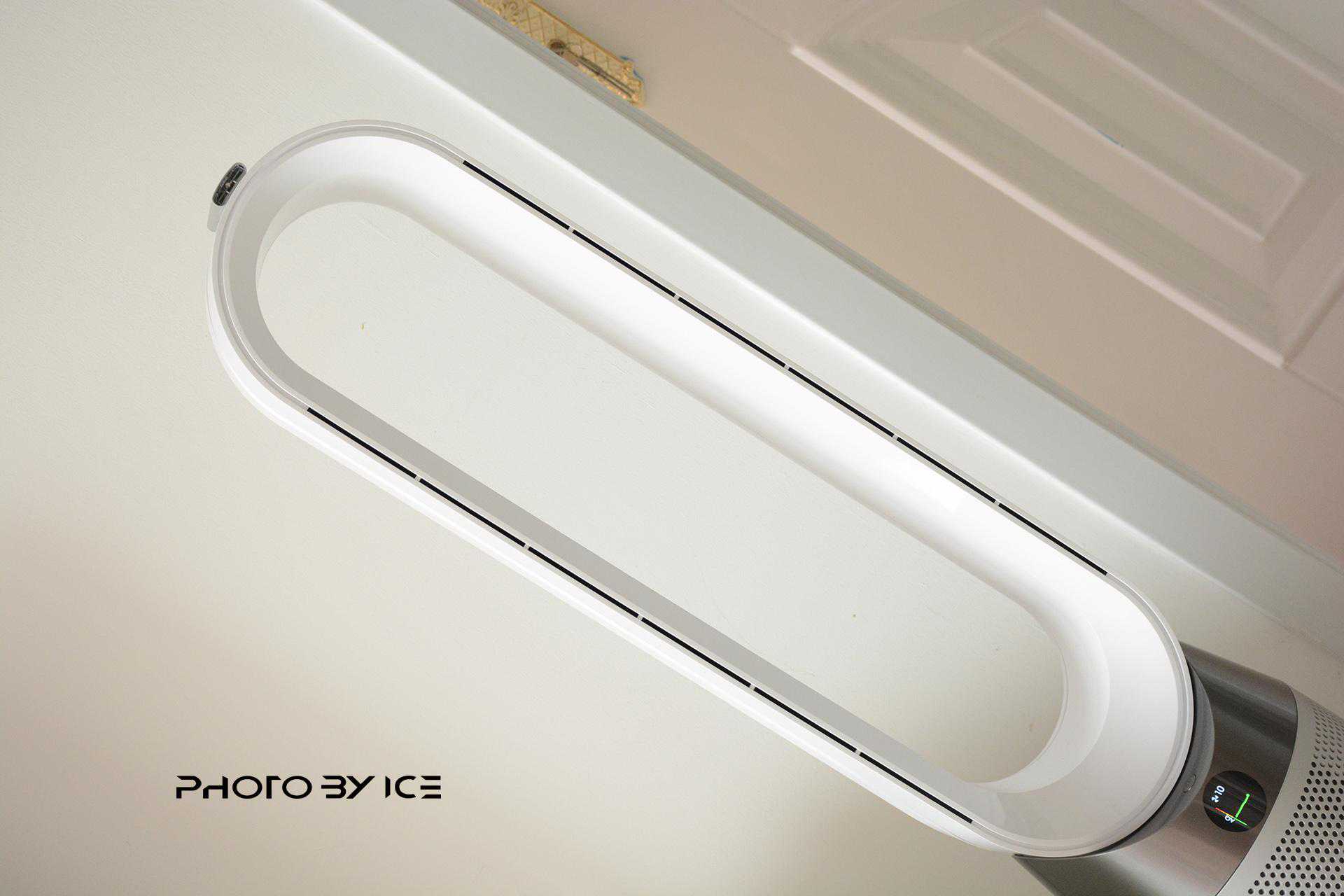 TP04空气净化风扇的上部是椭圆形的出风口,这是最引人注目的设计,一直是戴森的传承设计,干净的空气从椭圆形的出风口喷射出来,出风口在椭圆形的两面都有设计出风口,可以带来两种出风模式,分别是喷射式和扩散式。