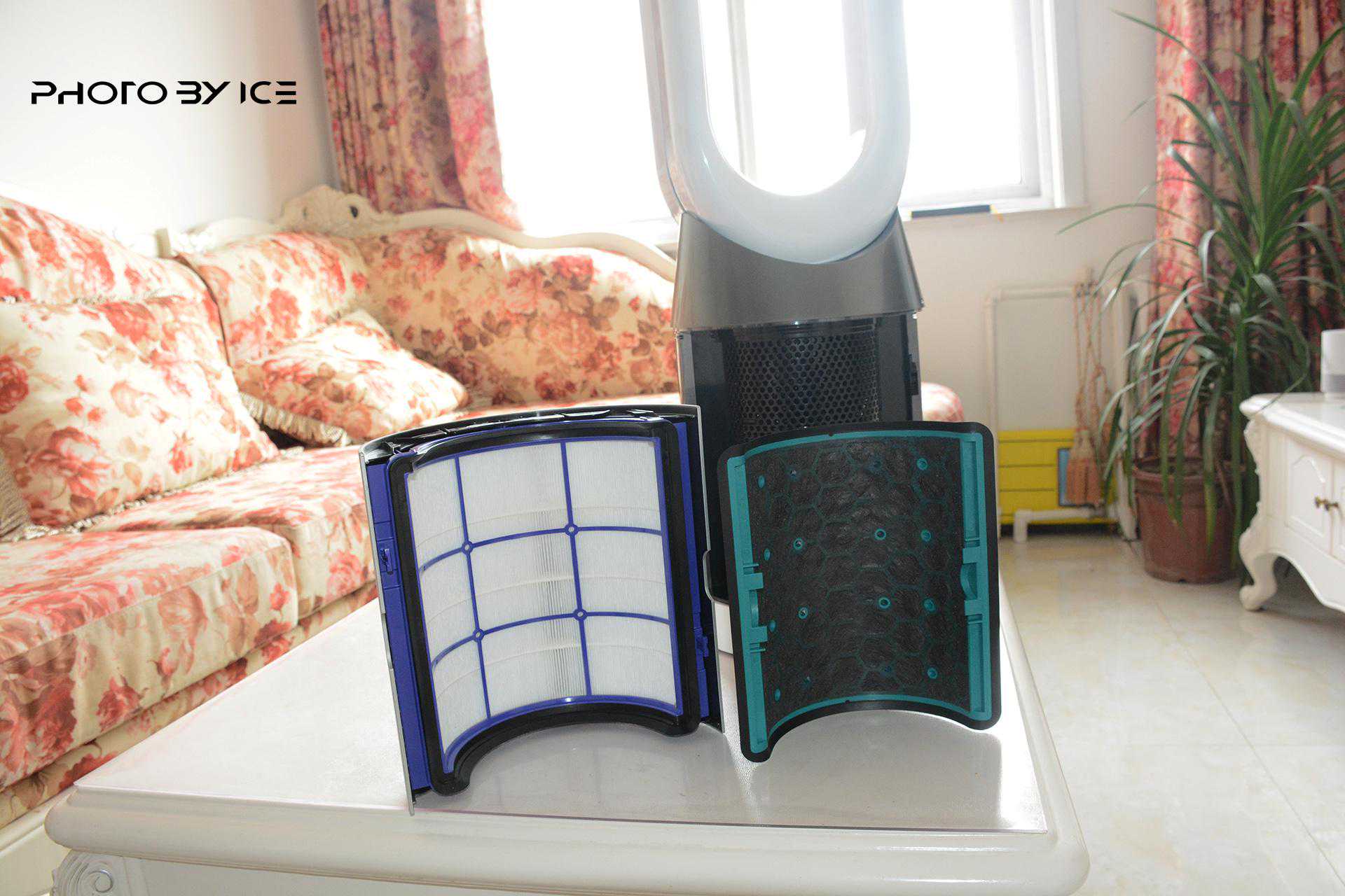 对于一款好的净化器而言,采用上等且大量的HEPA滤网尤为重要,DysonPureCoolTP04空气净化风扇的HEPA滤网材质用来净化超细颗粒物,以及采用比上一代多出三倍的活性炭净化有害气体。TP04空气净化风扇的HEPA的滤纸是用10米长的HEPA滤网经过264次折叠,以至可以净化99.95%小至的颗粒物,达到EN1822所规定的H13-A滤网标准,也就是医疗机构的参考标准。且滤网内的每一颗活性炭颗粒表面都覆有Tris三羟甲基氨基甲烷,这可以增加活性炭对诸如二氧化氮、甲醛、苯等有害气体的吸附与分解能力,让大可放心TP04对有机气体的净化能力。