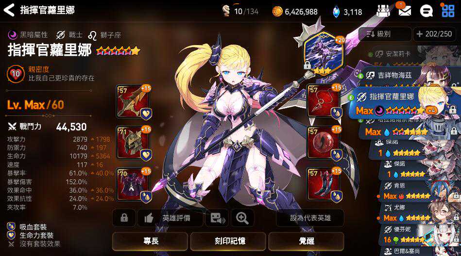 缺点:四星的身板稍微有些不足导致了除龙11(龙11boss只打前排1号位)以外的本相比其他单体输出角色稍稍更加容易翻车(因为自身要求暴击100%的缘故不容易凑出吸血)