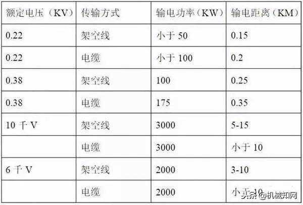 根据不同的额定电压推荐不同的输出容量输电距离: