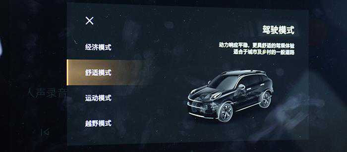 这台试驾车提供了供经济、运动、舒适、越野共4种驾驶模式,日常驾驶个人最推荐舒适模式,发动机出力平易近人,档位间的切换更加顺滑,同时换挡速度也可以给到好评。而运动模式虽然动力传输速度变得更快了,但总感觉变速箱逻辑还是不够直接。经济模式下油门比较佛系,动力藏着掖着,加速过程更为慢条斯理,但如果想要更高的动力请求,它还是能够得以释放,总之在领克01上的驾驶模式可以称得上是逻辑分明。