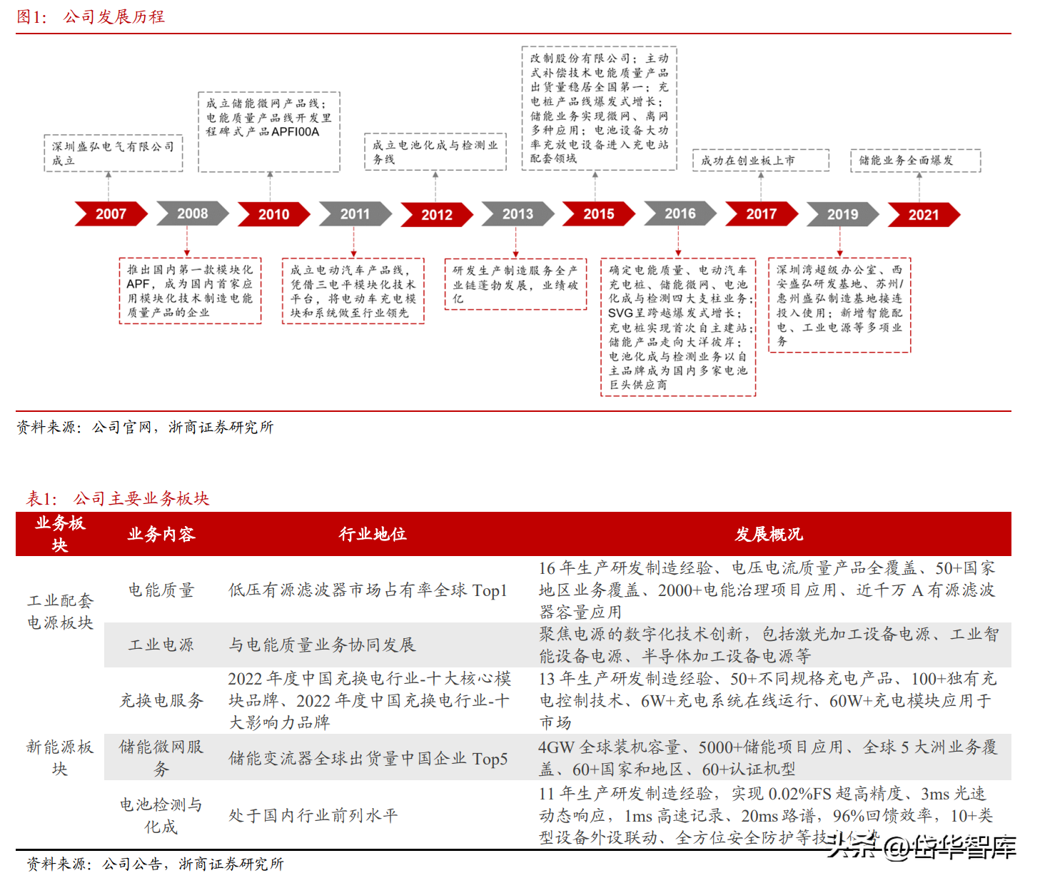 同时,公司深耕电力电子技术,不断挖掘细分行业的应用需求与潜力,分别于2010、2011、2012年成立储能微网产品线、电动汽车产品线、电池化成与检测业务线,并在2019年新增智能配电、工业电源等业务。