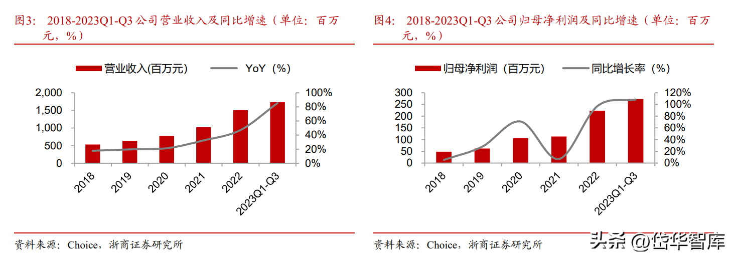 受益于储能和充电桩业务快速发展,公司业绩加速增长。公司2020-2022年分别实现营业收入7.71亿元、10.21亿元、15.03亿元,同比增长21.31%、32.41%、47.16%;分别实现归母净利润1.06亿元、1.13亿元、2.24亿元,同比分别增长70.99%、6.93%、97.04%。2019-2022年,储能和充换电业务快速拓展,助推公司业绩快速增长。2023年前三季度,公司实现营业收入17.33亿元,同比增长85.42%,实现归母净利润2.73亿元,同比增长108.44%。