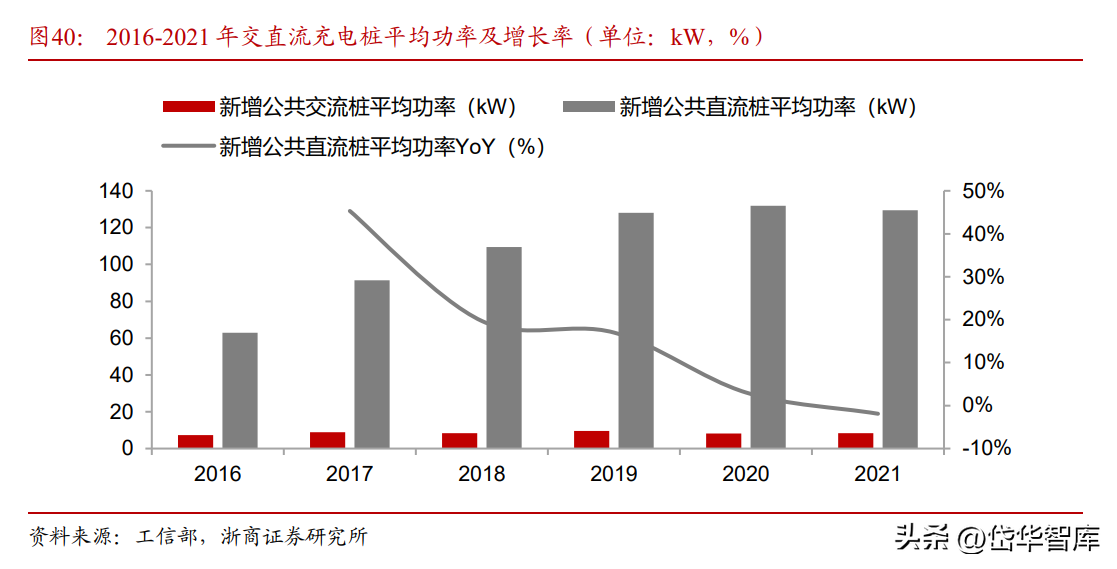 直流充电桩平均功率持续提升。为满足新能源汽车快速补能的需求,我国直流充电桩的功率不断提高,根据工信部《中国汽车产业发展年报(2021)》中的数据显示,中国直流充电桩平均功率从2016年的63KW提升至2021年的129KW。