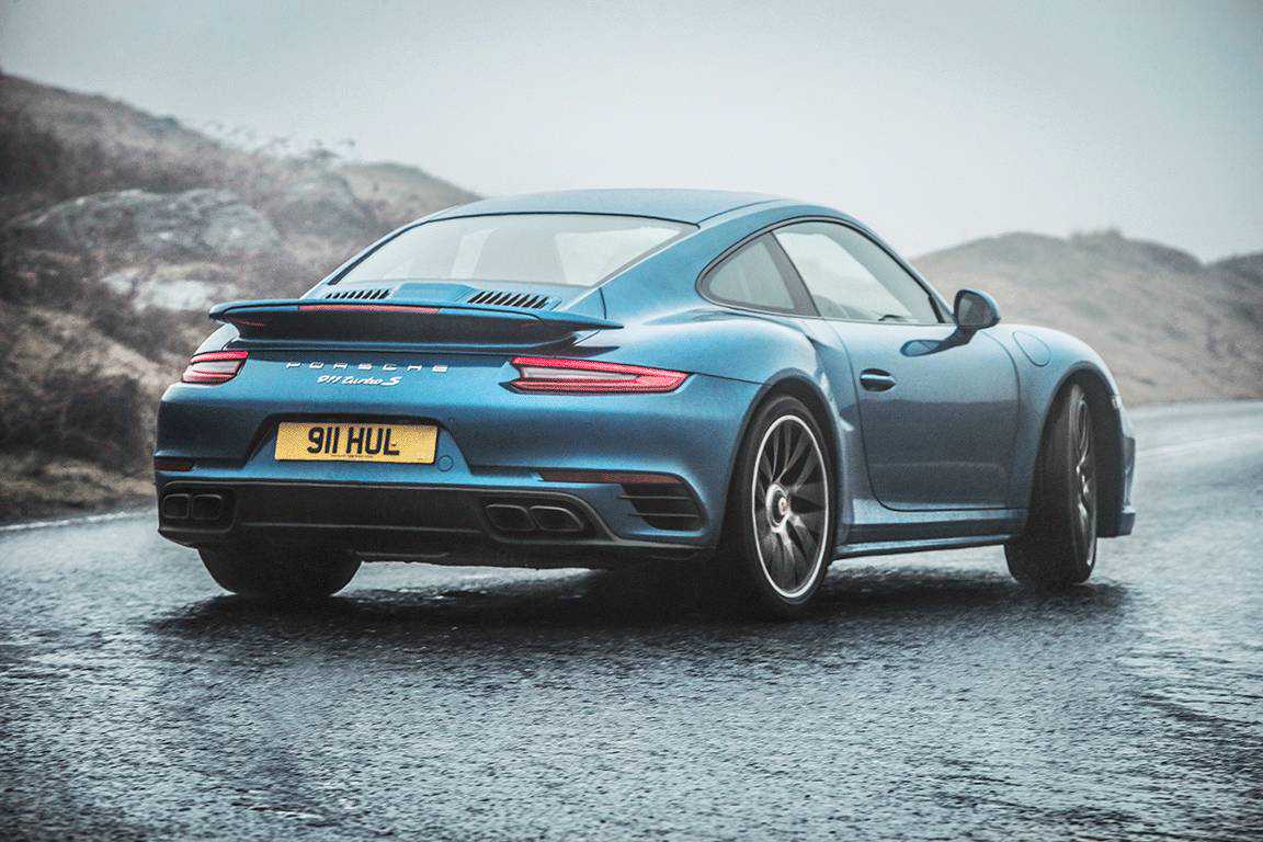 太可惜了,这石墨蓝的金属漆在无穷无尽的灰色天空下显得黯然无光,在正常条件下它可是个精美的尤物——水晶剔透下透露着肌肉的力量——流畅的车体,但是暗色的字体、排气和轮圈又闪烁着一点点的坏。在这台相对均衡的C4S旁边,GTS车身上一些小东西以及低趴的姿势则让它看起来有点不同。旁边这台有尾翼的Turbo同样消失在了迷雾之中。在面对其他15万英镑左右超级跑车的时候:奥迪R8V10,本田NSX或者迈凯伦570S等等,TurboS这台车显得有些弱,但是在整个911系列里,它还是属于领头羊了。