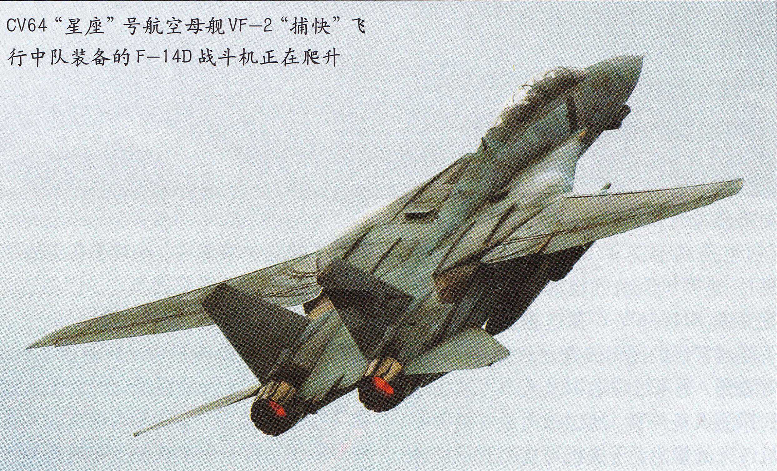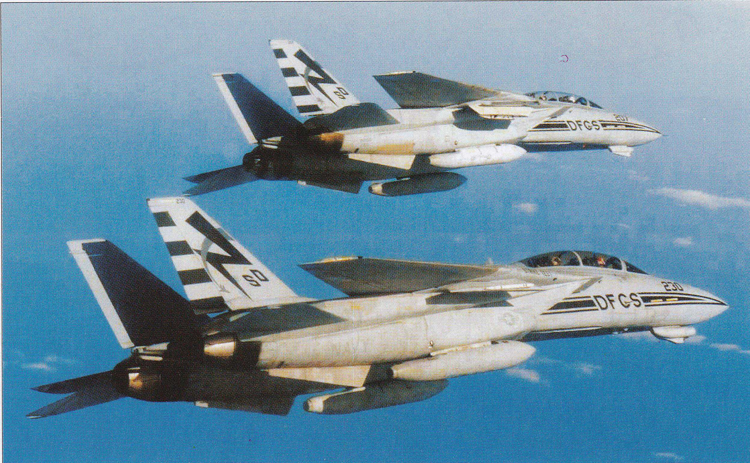 图示:隶属美国NAWC航空部、配备了DFCS系统的F-14D战斗机。DFCS系统能防止F-14在飞行中进入不可改出的水平螺旋以及着舰时发生事故,并提高机动性、可靠性和生存能力。目前DFCS系统已经正式服役。